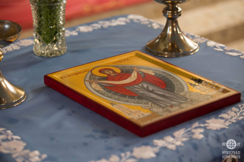 Az egyik helyi család nagylelkű felajánlásának köszönhetően új ikon kerül majd a templom falára: a kezében kendőt tartó, oltalmazó Istenszülő ikonját Szocska A. Ábel áldotta meg.