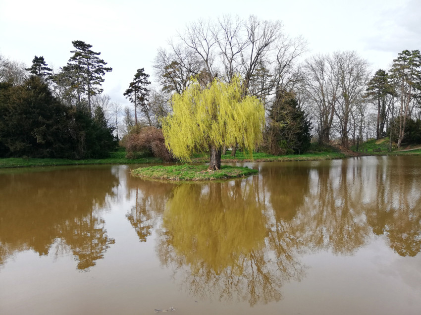 Hosszú órákat tölthetnénk még a kastélyban, de muszáj kimenni a parkba is, ami a messzi távolba csalogatja az idelátogatót. Egy többszáz éves tiszafa és egy hatalmas hárs mellett visz az utunk a park távolabbi részébe, a felújítás során visszaállított kerti tó környékére.
