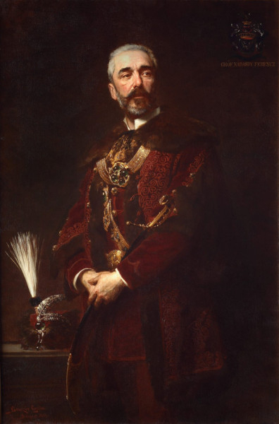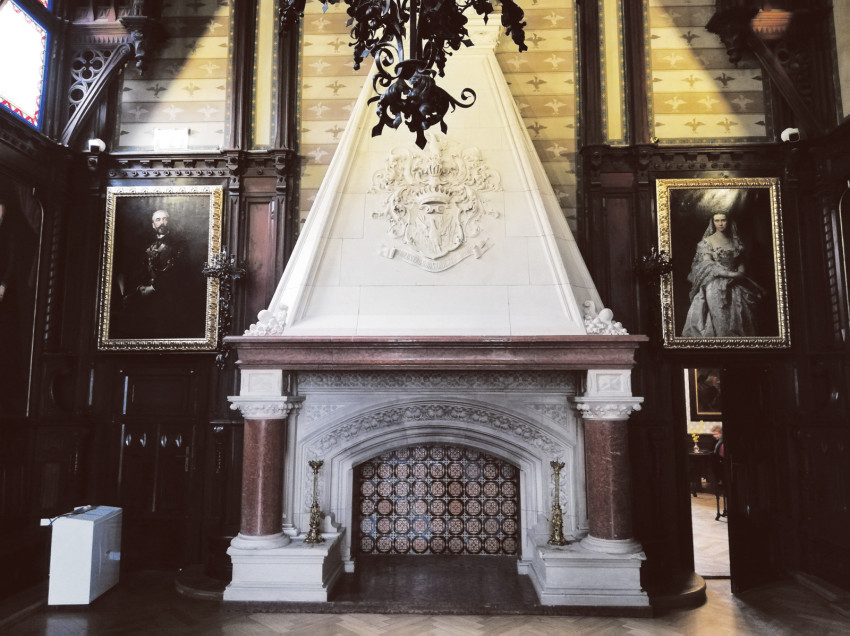 A kandalló két oldalán életnagyságú portrékat láthatunk Benczúr Gyulától: az egyik Nádasdy Ferencet, az építtető grófot ábrázolja, a másik a fiatal feleségét, gróf Zichy Ilonát. A két személy között – a valóságtól eltérően – óriási a korkülönbség. Ennek az az oka, hogy a feleségről az esküvői fénykép alapján készült a festmény. Amikor férjével 1873-ban kiutaztak Bécsbe, a világkiállításra, kitört a kolerajárvány, és Ilona megbetegedett. Hazahozták, de nem tudták meggyógyítani, hamarosan, mindössze huszonnégy évesen elhunyt. A házaspárnak négy gyermeke volt, az egyik kislány féléves korában meghalt. A másik három gyerekkel Ferenc egyedül maradt, nem házasodott meg többé. Szerelmi házasság volt az övék, ami ritkaságszámba ment akkor, amikor szinte mindenki érdekből házasodott; öt boldog évet töltöttek el együtt.