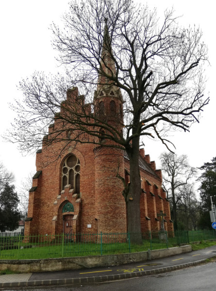 Az M7-es autópálya felől, Szabadbattyánon, Sárszentmihályon keresztül jutottunk el Nádasdladányba, ahol a kastélypark északi bejáratához közel egy szép vöröstéglás, eklektikus katolikus templomon akadt meg a szemünk. Neogótikus stílusáról, kör alakú tornyáról, támpilléreiről először Pecz Samu, a nagyszerű építész jut az ember eszébe, aki a pesti Nagyvásárcsarnok építője is volt. Nem tévedtünk, a források szerint is inkább ő a tervező, mint Hauszmann Alajos. A templomot Nádasdy Ferenc (1842–1907), a kastélyépítő gróf emeltette; érdekessége, hogy az oltárképen Szent Ilona látható, akiben az építtető korán elhunyt feleségét ismerhetjük fel.
