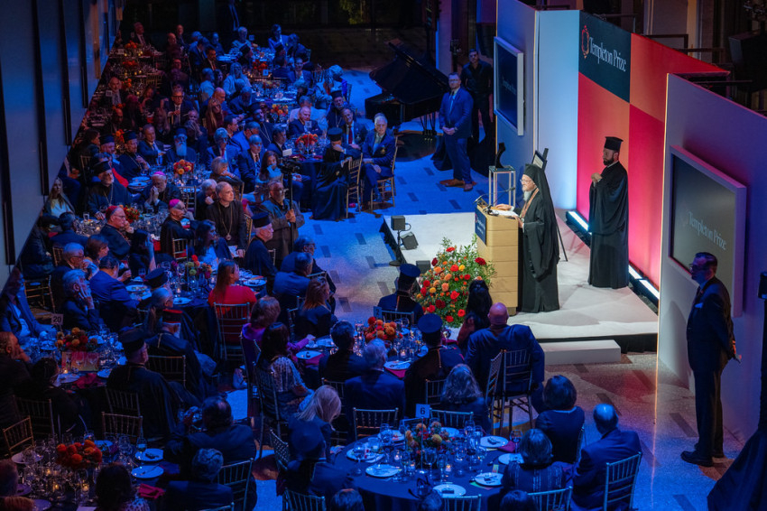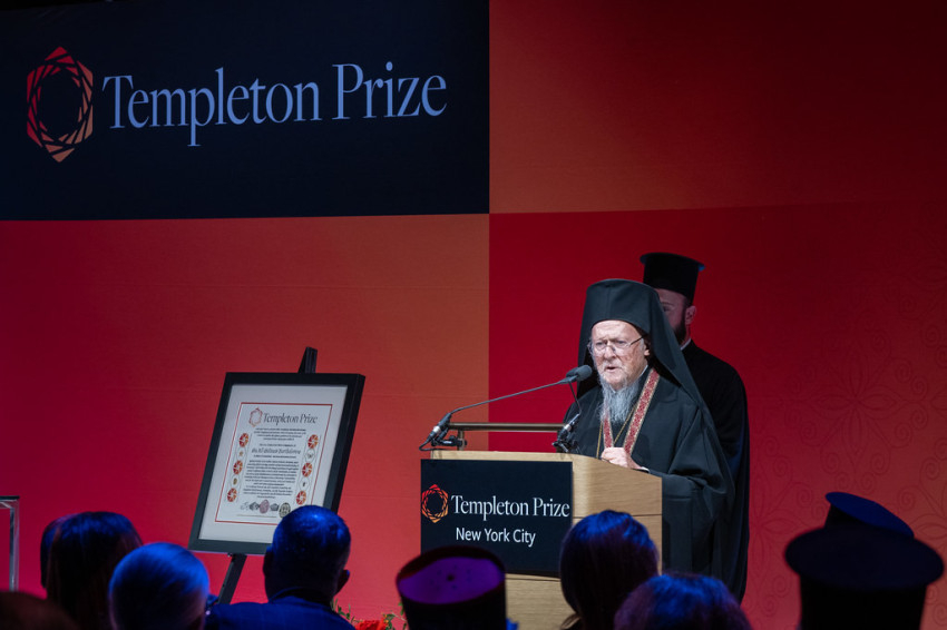 A díjátadó ünnepségen Ahol a menny és a föld találkozik: gondolatok a hitről, a tudományról és bolygónkról című erőteljes beszédében Bartholomaiosz pátriárka elítélte a tudomány és a vallás szétválasztását, kijelentve: