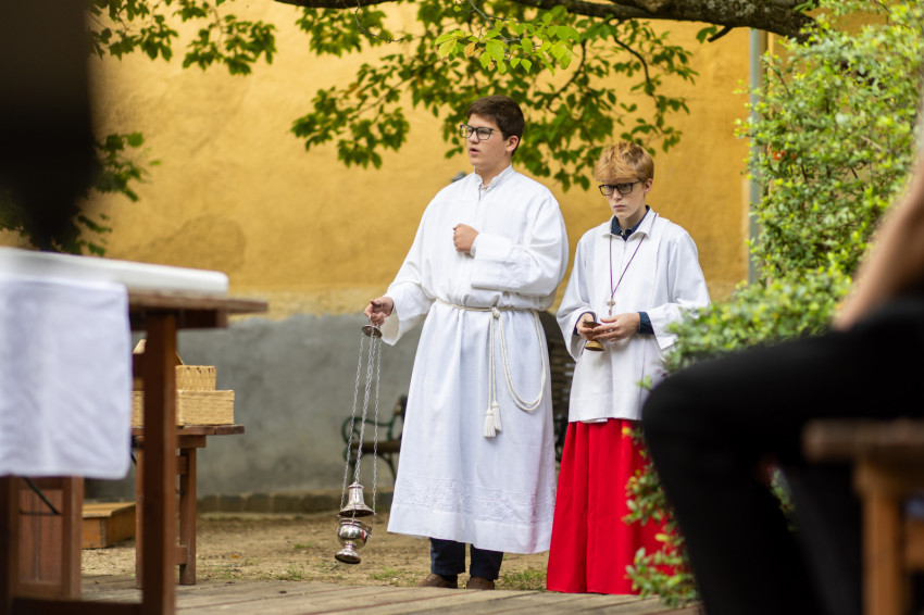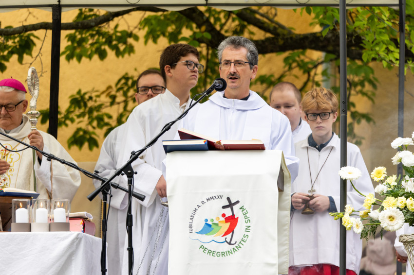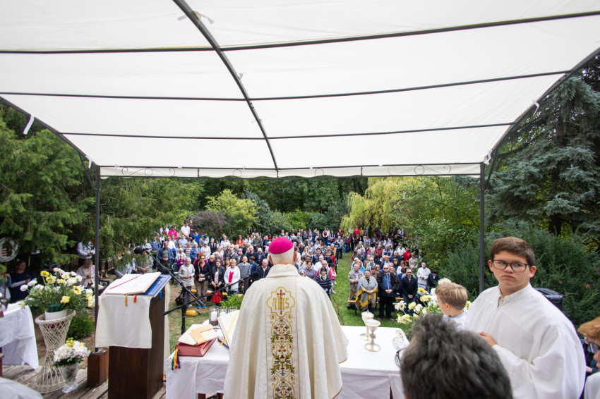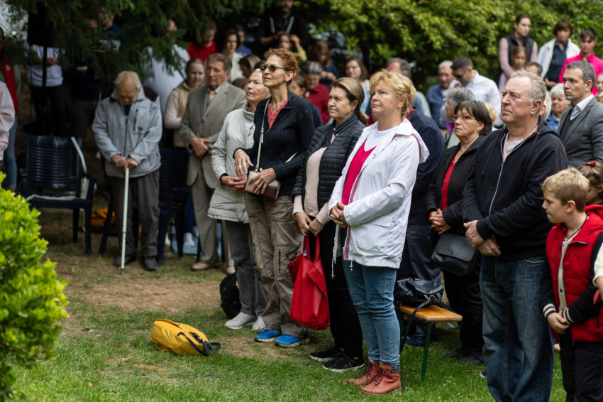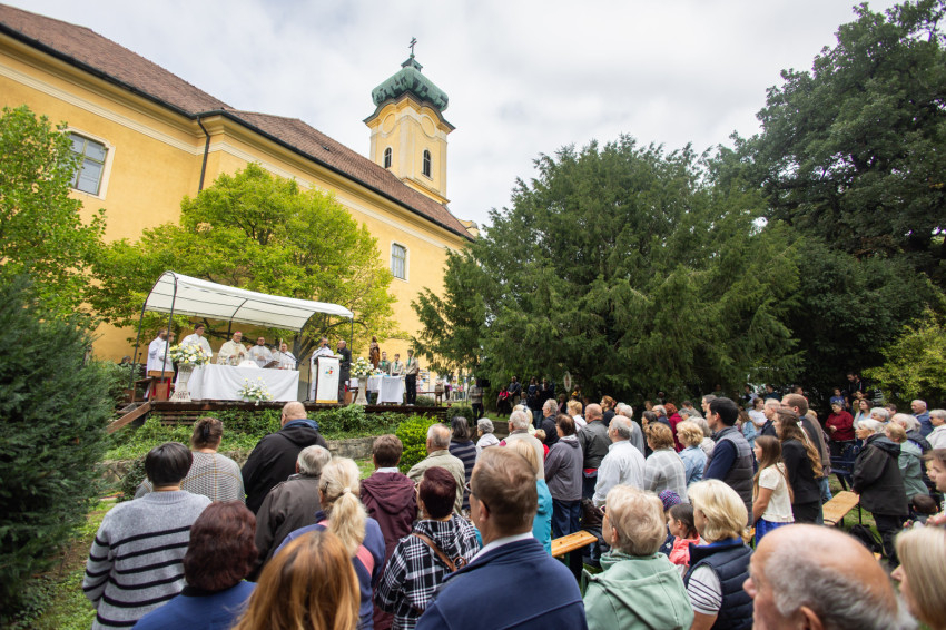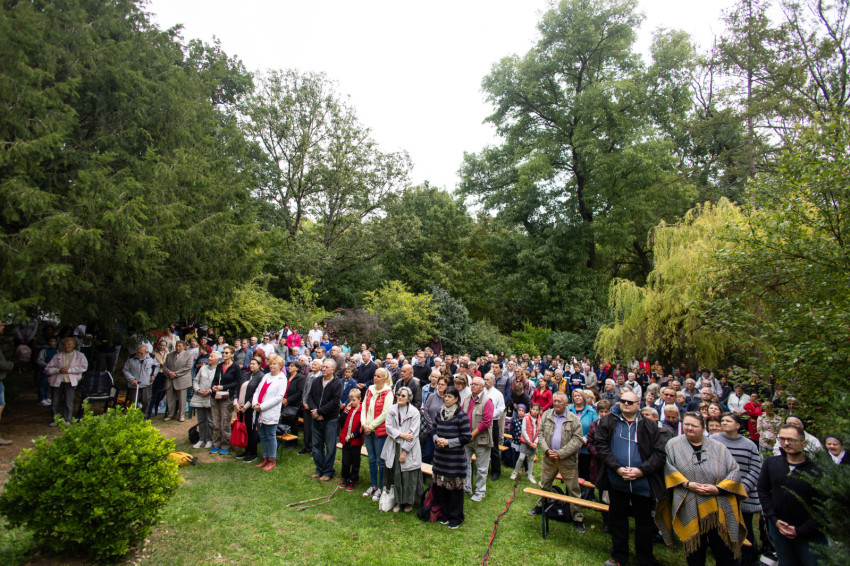 A szentmise kezdetén Harkai Gábor budakeszi plébános köszöntötte a főpásztort és a kertet megtöltő híveket, zarándokokat, külön szeretettel azokat, akik gyalogosan érkeztek az ünnepre.