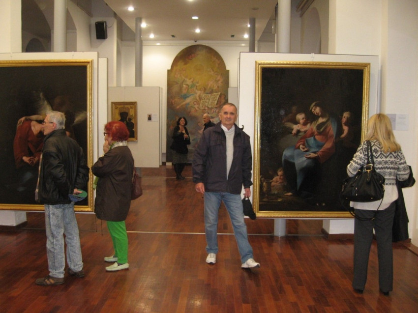 A tárlaton tizenkilenc olajfestmény tekinthető meg. A legnagyobb méretűek (négy méter magas és két méter széles) az adai és futaki egykori főoltárkép. Minden festménynek szakrális témája van, a katolikus egyházművészet alkotásai. A műtárgyak a katolikus egyház tulajdonát képezik, kivéve azt a négyet, amelyet a tárlatnak helyet adó intézményben őriznek.