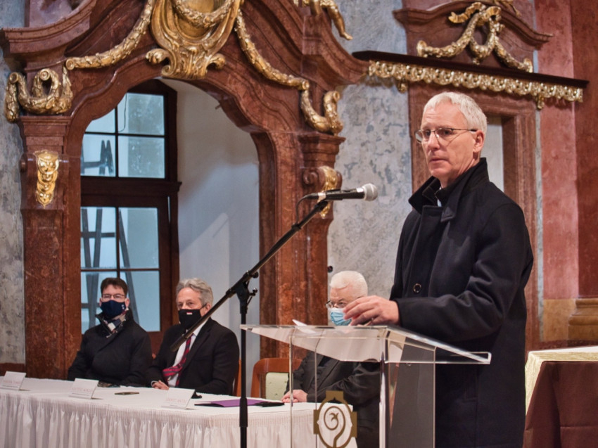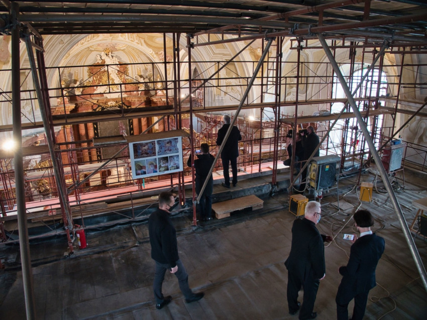 Az aláírást követően Vági Péter építész, a székesegyház felújításának koordinátora és Jeszeniczky Ildikó Munkácsy-díjas festő-restaurátor művész, vezető restaurátor tartottak prezentációt a munkálatokról és idézték fel a felújítás főbb mozzanatait.