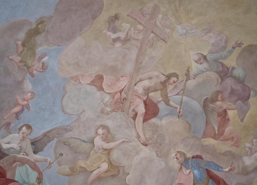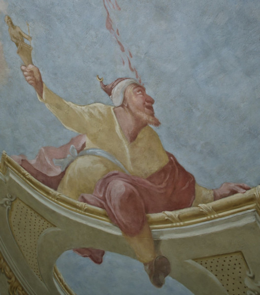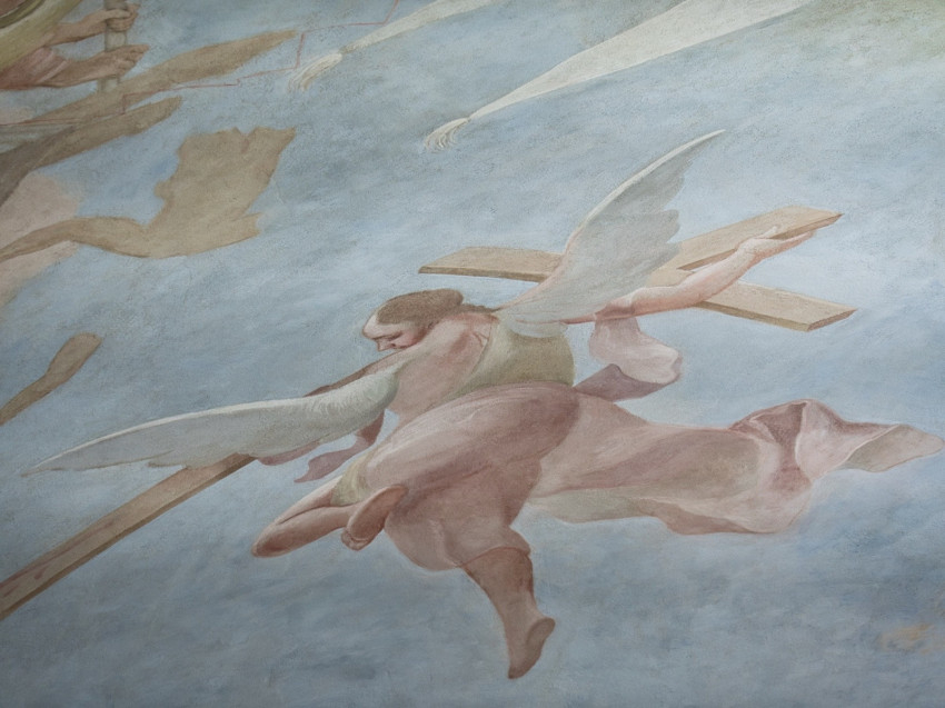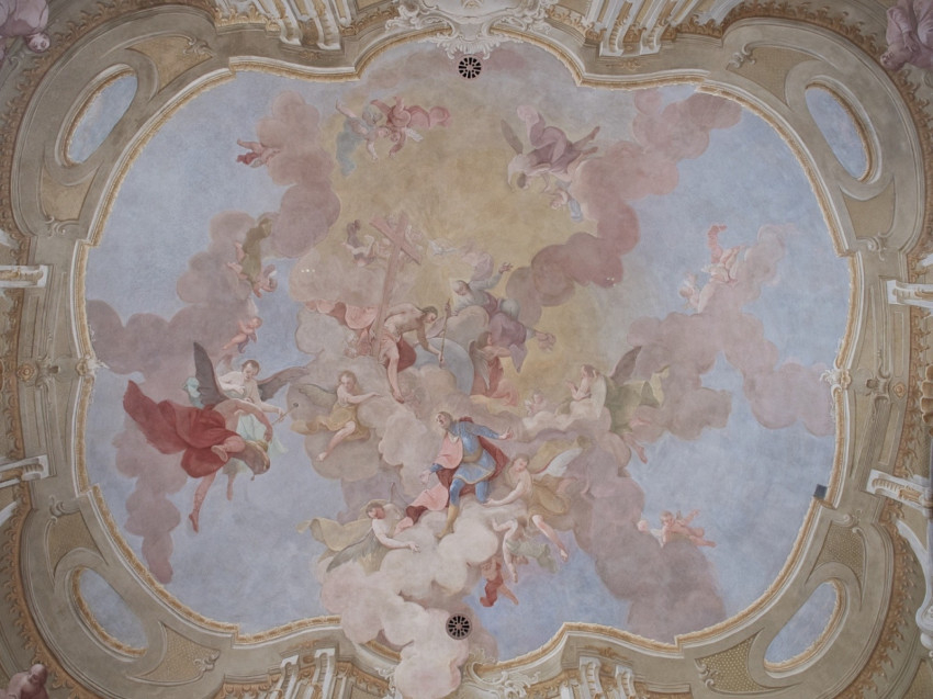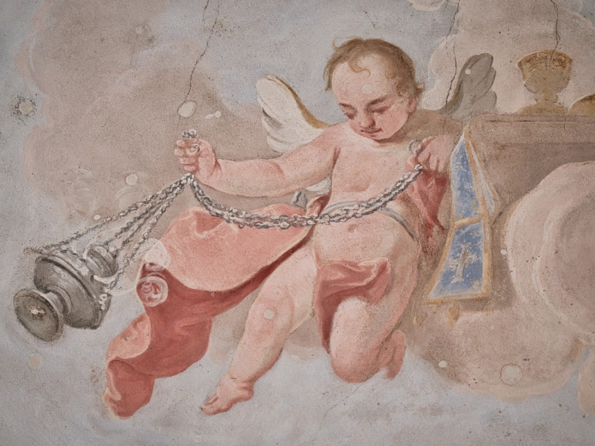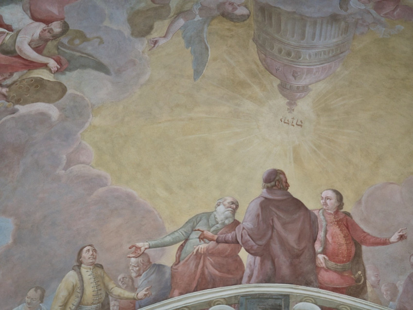 Az orgonakarzat feletti barokk mennyezetkép a 19. század közepére elpusztult, a Szent Cecíliát ábrázoló festmény helyére a barokk dekoráció egységéhez illeszkedő új falképet fest a Magyar Képzőművészeti Egyetem emeritus rektora, Kőnig Frigyes Munkácsy Mihály-díjas festőművész.