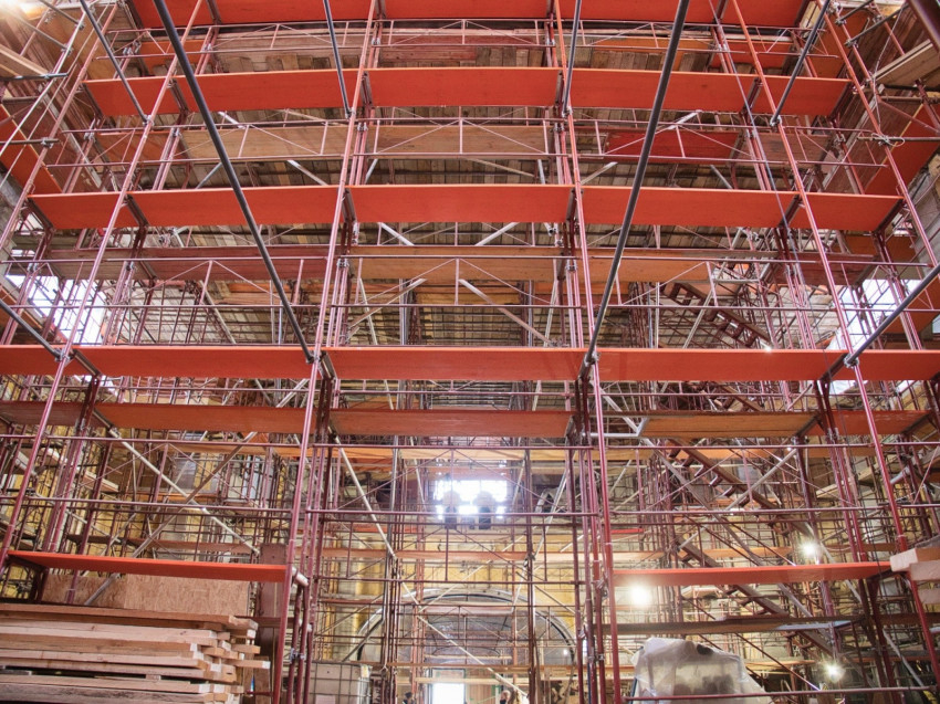 A munkák jelenlegi állásáról Vági Péter koordinátor elmondta, a komplex örökségvédelmi, restaurátori és épületfizikai kutatások eredményeinek felhasználásával