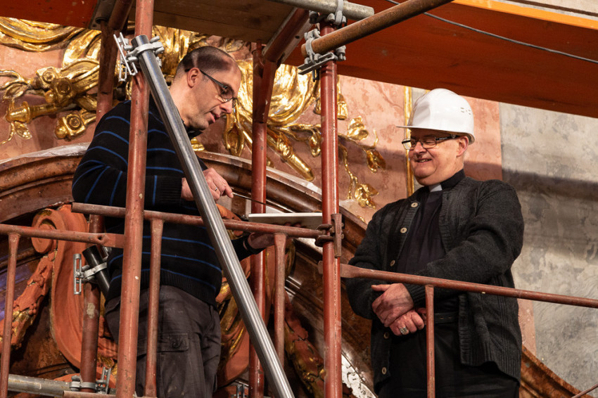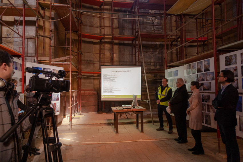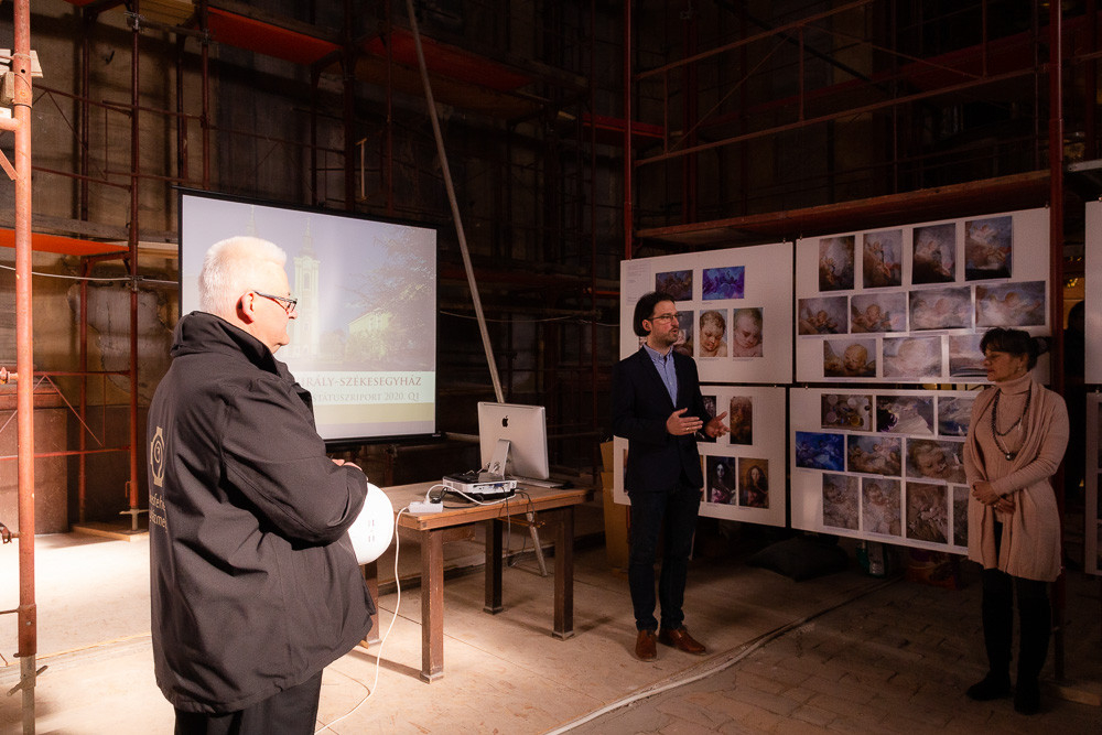 Spányi Antal megyéspüspök folyamatosan nyomon követte a munkálatokat. Most Vági Péter projektkoordinátor, Jeszeniczky Ildikó vezető restaurátor, Bodnár Gyula farestaurátor-művész, valamint a műmárvány és stukkófelületek tisztítását és aranyozását végző szakemberek mutatták be az eredményeket.