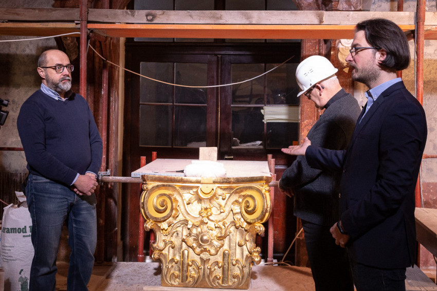 Egy pilaszterfejezeten demonstrálta Bodnár Gyula farestaurátor a 18. századi aranyfelületek restaurálásának problémáit és eredményeit. A restaurátoroknak sikerült megmenteni a negyedévezredes aranyozást, míg az új aranyozást megfelelő felületképzéssel úgy illesztették a régihez, hogy egységes megjelenésű, ragyogó eredményt kaptak. Nagy Gergely aranyozó a stukkó felületek aranyozását mutatta be a szentély oldalfalán lévő díszítményeken.