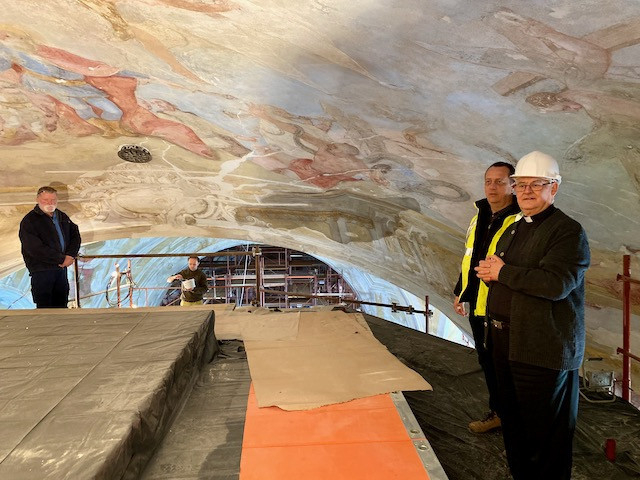 A bejárás végén Spányi Antal megyéspüspök az állványokról tekintette meg a letisztított mennyezetképeket. A kivilágosodott, ragyogó, gyöngyházfényű freskók látványa a székesegyházbelsőnek könnyed, légies megjelenést biztosít. Újra megnyílik a mennyország a templom mennyezetén.