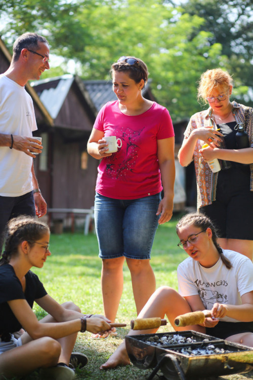 „A cserépváraljai tábor szervezése februárban kezdődött – mondta Ungár Dániel. – Munkacsoportokat alakítottunk, majd online dolgoztunk együtt, programfüzetbe gyűjtöttük össze a teendőket, s amikor augusztus elején felépítettük a tábort, a helyszínen egymás közt begyakoroltuk a programelemeket, amelyek nemcsak játékokról szólnak, hanem komoly témákat érintő csoportbeszélgetésekről is.” Bizalom, önismeret, önértékelés, testbeszéd, barátság, párkapcsolat – ilyen és ehhez hasonló témák is előkerültek a csoportműhelyekben.