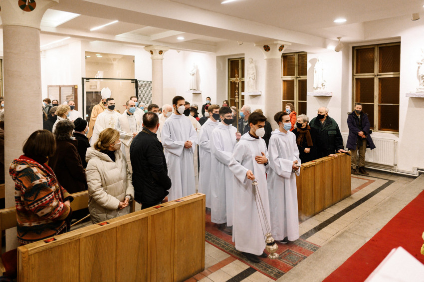 A jezsuita atyák ünnepélyes beiktatását Orbán Gellért fotóin követhetjük nyomon. A szertartáson a plébánia nemrégiben alakult ifjúsági vegyeskara működött közre Kaposi Brúnó és ifj. Janka György vezetésével.