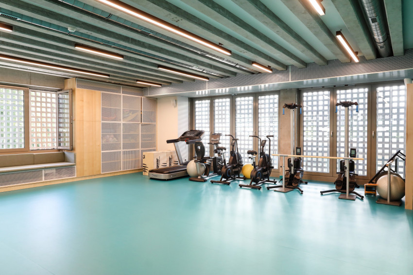 A szakrális tér közelében, egy másik teremben zajlanak a babás foglalkozások, a mozgásos és zenés fejlesztőprogramok sora, a késő délelőtti időszakban pedig érkeznek a nyugdíjasok a gerinctornára, vagy rehabilitációs foglalkozásokra. Délután pedig az iskolás korosztály lepi el a házat. Az ép testben ép lélek elve alapján fitnesztermet is működtetünk.