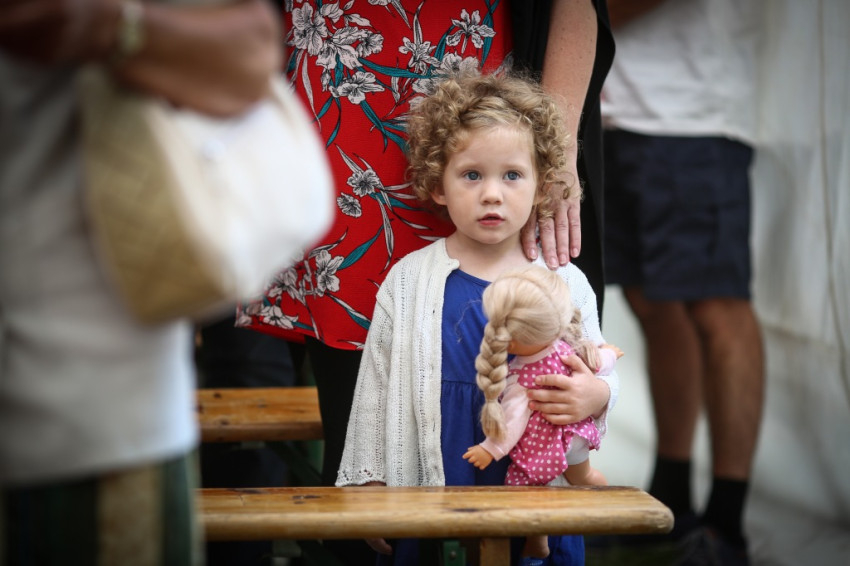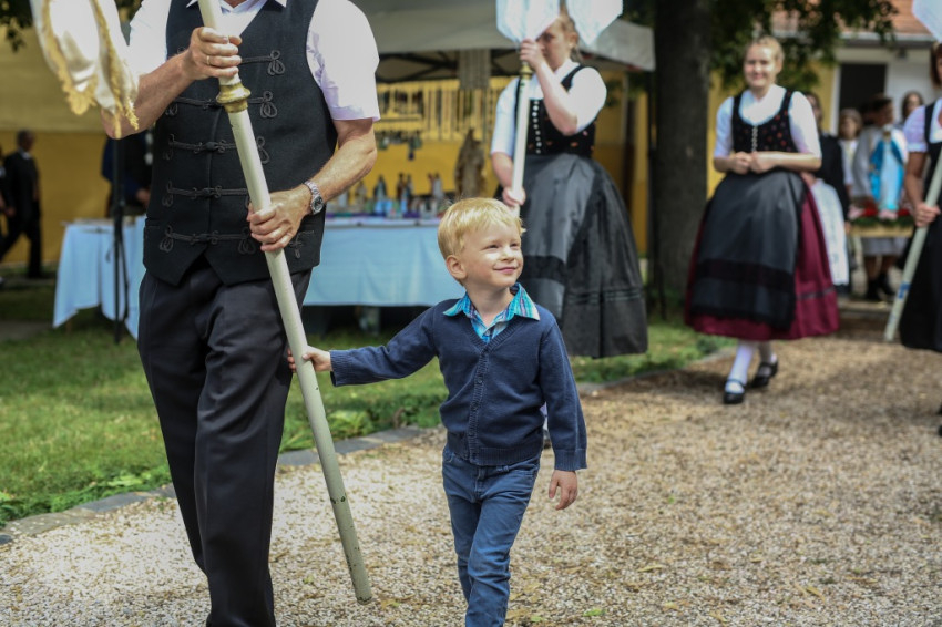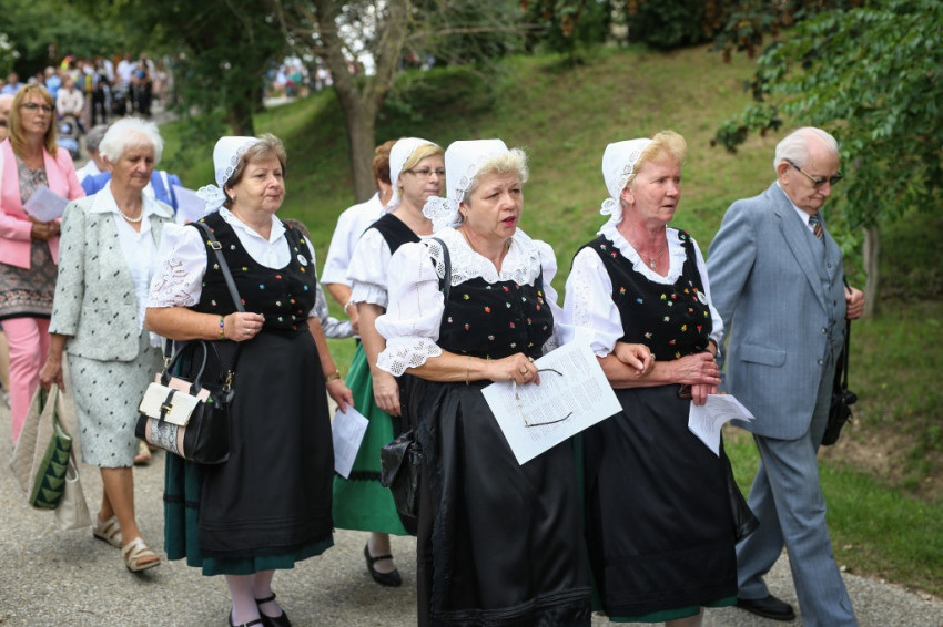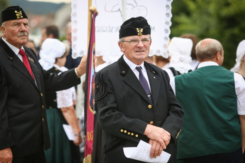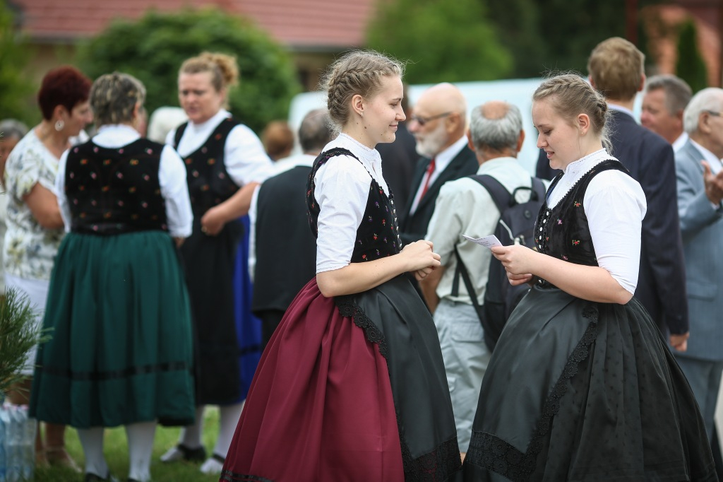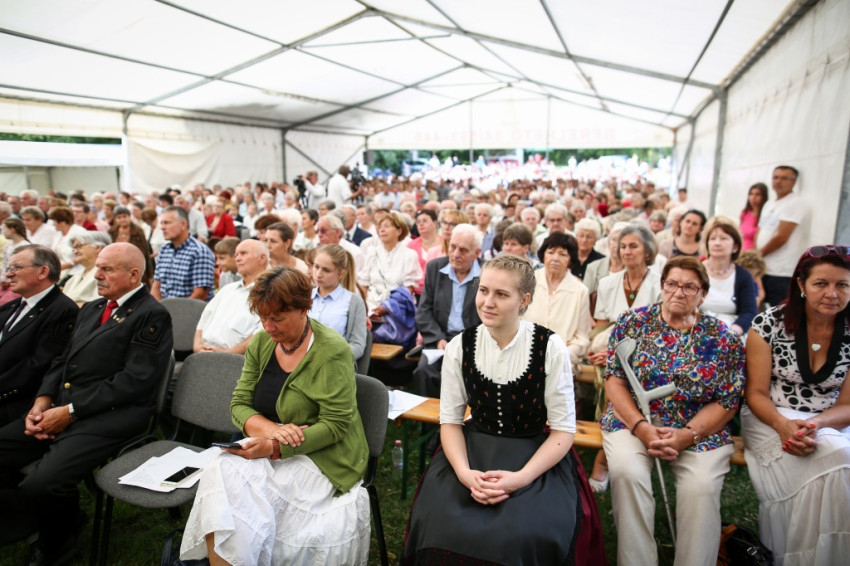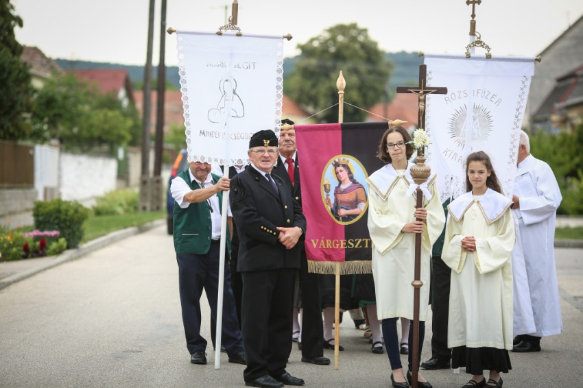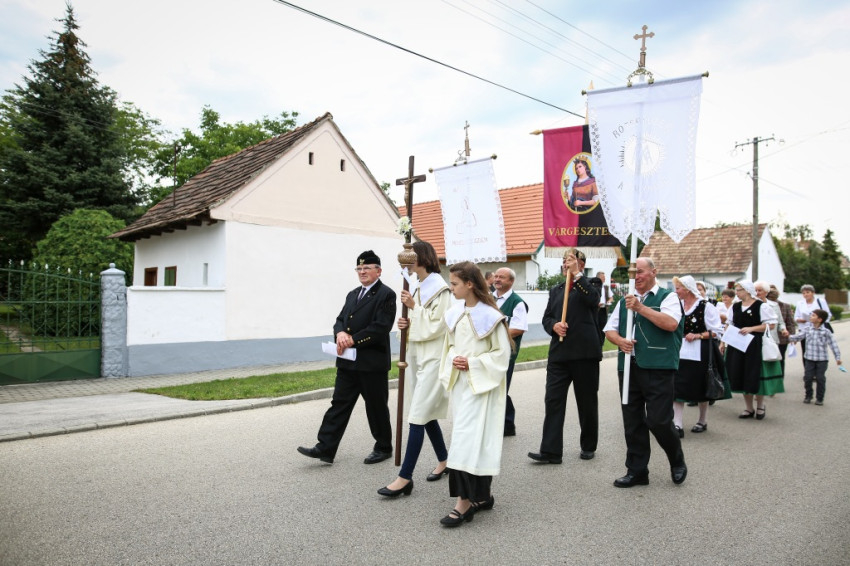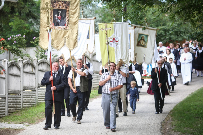 Először Bedy Sándor plébános majd Pfiszterer Zsuzsanna, a falu helytörténésze köszöntötte az egybegyűlteket. A plébános arról beszélt, e rohanó világban az Egyház feladata elsősorban a szeretet, az imádság és az áldozat által valósul meg. „Ezt tanultuk Jézustól, és ezekre a fegyverekre van szükségünk a boldoguláshoz.” Pfiszterer Zsuzsa a búcsús szándékot fogalmazta meg: azért gyűltünk össze, hogy hálát adjunk, hogy segítséget kérjünk, attól, aki meghallgat, oltalmat nyújt. „Tiszta szívemből kívánom, hogy mindannyian tudjunk erőt meríteni a hétköznapok feladataihoz, a jövőnk biztos alapokra építéséhez, örülve az apróságoknak, és ezzel ünneppé alakítva életünket.”