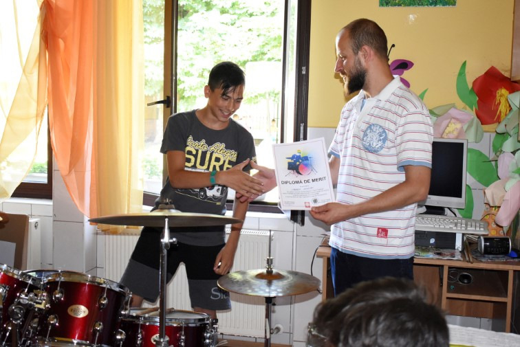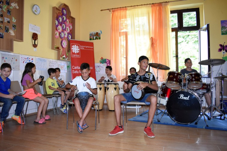 A Caritas szatmárnémeti gyermekintézményében hét évvel ezelőtt kezdődött meg a doboktatás. A szatmárnémeti Dinu Lipatti Filharmónia dobművésze, Didi Péter heti három alkalommal jár a Barátság Házába, hogy a dobolás iránt érdeklődő gyermekeket oktassa. A 2018/19-es tanévben tizenkét diák vett részt az órákon, akik a pénteki esemény keretében társaiknak, szüleiknek, testvéreiknek is megmutatták, mi mindent sajátítottak el az elmúlt tanév folyamán. A gyerekek előbb szólóban játszottak, majd közös produkciót adtak elő.