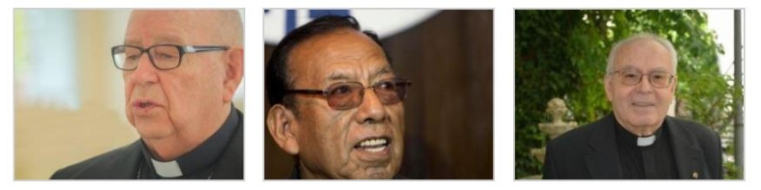 A 14 új bíboros között van egy püspök, egy érsek és egy szerzetes is, akik „szolgálatukkal különösen is kitűntek”: ők Sergio Obeso Rivera, a mexikói Xalapa nyugalmazott érseke; Toribio Ticona Porco, a bolíviai Corocoro nyugalmazott prelátusa és Aquilino Bocos Merino spanyol klaretiánus szerzetes.
