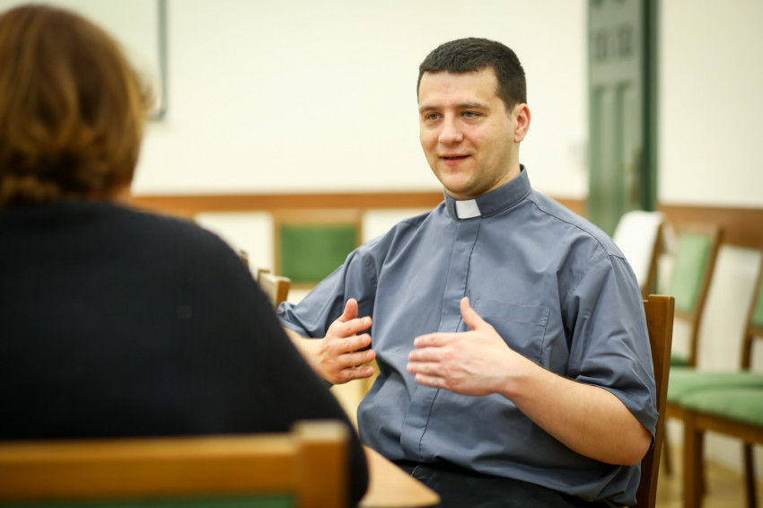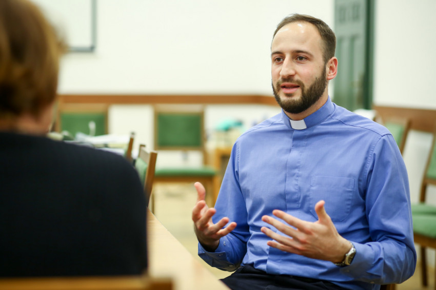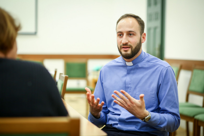 A gimnázium után még megszerezte a gépész szakmát, egy évet műszaki főiskolára járt, de akkor már ott volt, bár belső tagadástól kísérve a meghívás tudata. 2014-ben jelentkezett a szemináriumba. Ez a hat év segített neki megtalálni a vezérfonalakat, a stabil pontokat. „Egy képpel írnám ezt le. A hóviharban az emberek elveszítik a tájékozódást. Egy lánc vezeti és kapcsolja őket össze. Ez ad stabilitást, ami megtart, amibe kapaszkodni lehet. Ez a Krisztushoz tartozás. Ha megélem, jobb ember leszek. Egységben vagyok a többiekkel. Erőt ad, hogy valakihez és valahova tartozom. Egyedül nem megy. Nekem mindig nagyon fontos egy-egy mosoly, hogy valaki időt szán rám. Én is így szeretnék jelen lenni az emberek között. Időt és figyelmet adni, meghallgatni, egy jó szót adni, észrevenni, hogy kinek van a jó szóra szüksége.”