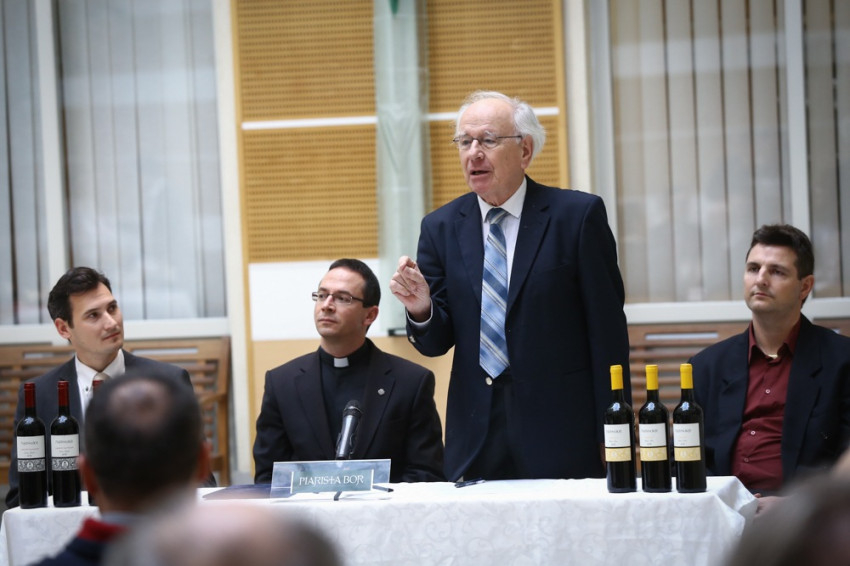 Van miért versengeni – emelte ki Rohály Gábor, milyen jótékony hatással bír a termelőkre a piaristák által meghirdetett borválogatás. A versengés más szempontokról is szól, más a győztes bor sorsa, mint egy szokványos borversenyen. Megkapja a címkén a „Piarista bor” feliratot, és a piarista család életének része lesz. A korábbi években jól választottunk, a fogyasztói visszajelzések ezt mutatják – mondta a hazai borkultúra meghatározó alakja. Rohály Gábor méltatta a szerzetesi jelenlétet a borászatban: a szerzetes számára mind az előállítás, mind a fogyasztás Isten nagyobb dicsőségére történik.