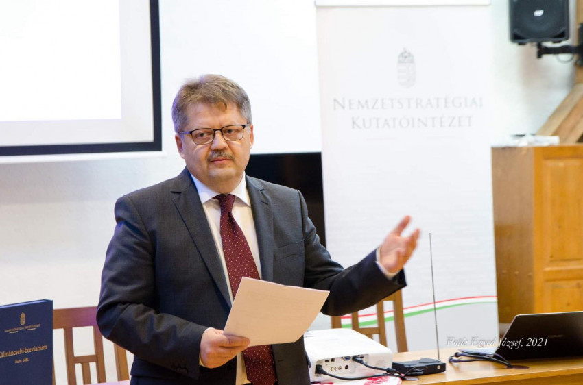 Kálmáncsehi Domokos nagyprépost életútját Szász Jenő, a Nemzetstratégiai Kutatóintézet elnöke, a rendezvény házigazdája méltatta.