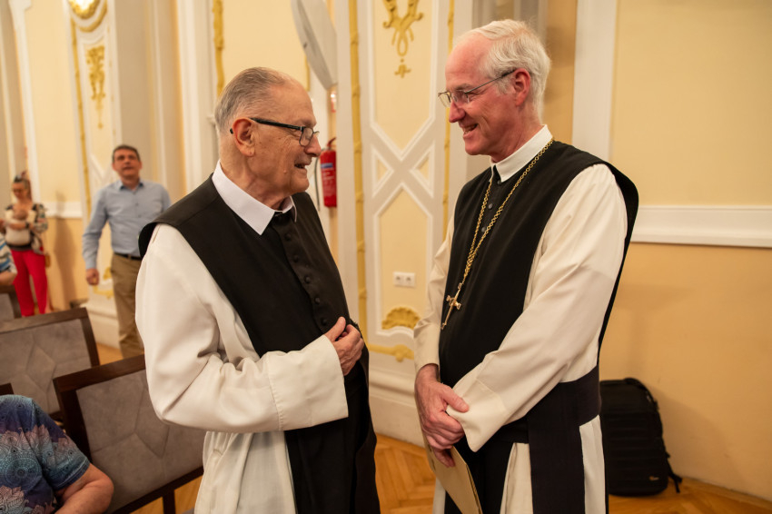 Halász Nivárd OCist rendtörténeti bevezetőjében arra emlékeztetett, hogy hetven éve alakult meg a dallasi monostor. Rábay Kristóf még a virágzó zirci apátságban tette le a fogadalmát, míg Donát atya titokban vált ciszterci szerzetessé. Kristóf atya Freiburgban, Donát atya Rómában tanult teológiát. Donát atya emellett több mint ötven éve szolgál a dallasi magyarok lelkipásztoraként.