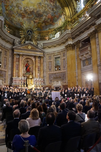 – Feleségem, Maria, akivel 1956 óta vagyunk házasok, mindig is kérte, hogy írjak egy misét. Ám nem írtam. Majd egy reggel, amikor kiléptem a házunkból, találkoztam Daniele Libanori atyával, az Il Gesù – amely pár lépésre van az otthonomtól, és ahová gyakran eljárok – templomigazgatójával, aki megkért, hogy írjak egy zeneművet a Jézus Társasága visszaállítása kétszázadik évfordulója tiszteletére. Ez 2012-ben történt. Egy kis ideig gondolkoztam ezen. Idő közben megválasztották Ferenc pápát, az első jezsuita pápát. Így igent mondtam, és neki, valamint feleségemnek ajánlottam a darabot. Így született meg a Missa Papae Francisci. A visszaállított Társaság kétszázadik évére. Egyre többet jelent ez nekem, aki mindig is hívő voltam, katolikus családban nőttem föl, és ez mindig is befolyásolta az életemet.