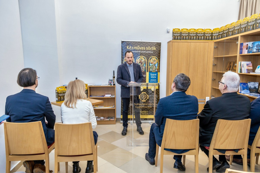 Spányi Antal püspök, Róth Péter alpolgármester, Vértes Tibor, az Agárdi Pálinkafőzde ügyvezetője és Smohay András, a Székesfehérvári Egyházmegyei Múzeum igazgatója ismertette és méltatta a söröket és az új terméket.