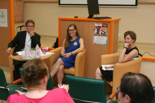 Ahogyan a 2017-ben Szombathelyen, a Katolikus Egyetemi Lelkészség szervezésében tartott, a kötettel megegyező című nyilvános előadás-sorozat is a kétosztatúságra építkezett, úgy a konferenciateremben tartott beszélgetést is meghatározta a férfi és női nézőpontok együttállása: a női szerzők képviseletében a Vas megyei származású Kalmár Petra, a budapesti Szent István-bazilika munkatársa, hitoktató, teológus és lelkipásztori munkatárs segített felderíteni a könyv megírásának különleges hajtóerőit.