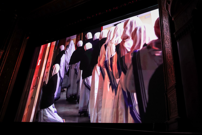 A bevezető után vetítették le az 54 perces dokumentumfilmet, amelyben a kolkatai Haldoklók és Nincstelenek Házában, kórházakban, leprások otthonában, iskolákban készített felvételek mellett interjúk is elhangzanak: megszólal Thomas D’Souza kolkatai érsek; Bangha Imre indológus, az Oxfordi Egyetem tanára; önkéntesek, kortársak és a Szeretet Misszionáriusai rend nővérei.