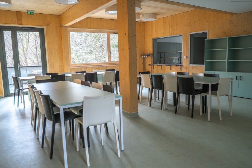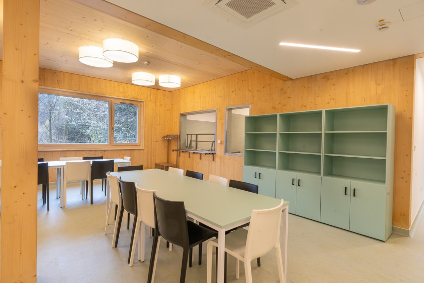 Az épületet a kétszintes közösségi tér, a „zsibongó” köré szervezték a tervezők, amihez a tartószerkezet által lehatárolt kisebb térrészek csatlakoznak, helyet biztosítva az elvonulásra, intenzív vizuális kapcsolatokkal ugyanakkor mégis a közösséghez tartozás érzését biztosítva.