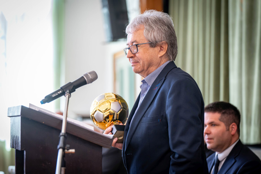 (Kondás Sándor az aranylabdát Tóth Konstantin igazgató úrnak adta át, arra kérve, hogy továbbítsa majd a szeptemberben kezdő, legifjabb „czuczorosok” osztályfőnökének.)