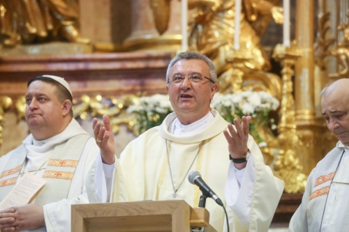 Veres András a 2007-ben elhunyt diáktárs soraival fogalmazta meg, hogy Isten segítségével vagyunk képesek tisztábban látni a világot, majd az irgalmasság szentévére tekintve arra mutatott rá, hogy a szentév az újjászületés lehetőségét kínálja, amire mindenkinek szüksége van.