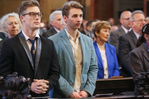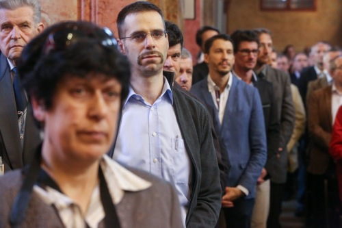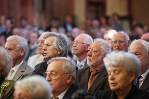 „Szent Benedekhez szálljon fel az ének” – hangzott fel a szentmise kezdőénekeként a Szent Benedek-himnusz. Több száz öregdiák zengő férfihangja töltötte be a templomot. Majd Horváth Dori Tamás köszöntötte az egybegyűlteket.