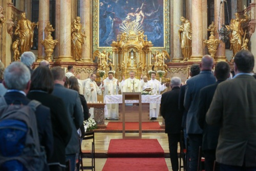 A találkozó szentmisével kezdődött. A Loyolai Szent Ignác bencés templomot zsúfolásig megtöltötték az érettségi találkozóra érkezett öregdiákok és hozzátartozóik. A szentmise főcelebránsa és szónoka Veres András kinevezett győri püspök, egykori bencés diák volt, számos paptestvér koncelebrált, köztük Horváth Dori Tamás, a bencés közösség győri perjele és Fazakas Zoltán Márton OPraem, a Csornai Premontrei Apátság elöljárója.