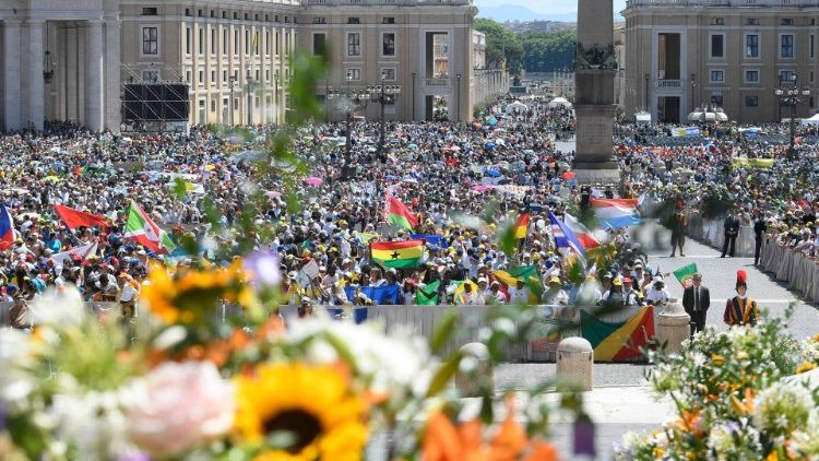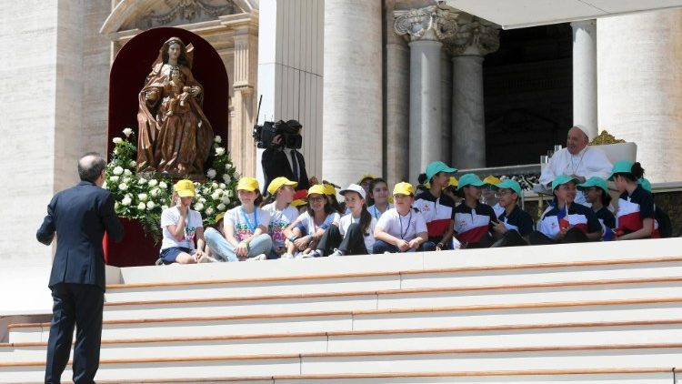 Az emberiség történetének legnagyszerűbb gondolataként idézte, amit Jézus mondott a hegyi beszédben: „Boldogok az irgalmasok. Ez a felhívás mindenkihez szól, legyünk mélységesen jók. Az élet szeretet, és végtelen együttérzés a fájdalommal, amely átjárja az emberiséget.” Felhívást is intézett a gyerekekhez: „A háborúnak véget kell vetni. Azt mondhatjátok erre: ez csak egy álom, tündérmese. Igen, így van, de ahogy Gianni Rodari mondta: »A mesék valósággá válhatnak, igazzá válhatnak!«