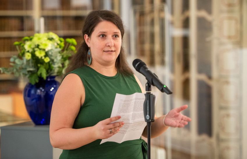 A Bibliamúzeum időszaki kiállítása formabontó abban a tekintetben, hogy nincs vezérfonala, központi tematikája, hacsak József Attila versrészleteit és azok hangulatát nem tekintjük annak. A költemények azonban, amelyekből az idézetek származnak, sokszor teljesen más érzésekről, élményekről mesélnek, mint a képek. Nem egyértelmű a fókusz, mint például a legutóbbi, Körülzártál engem című időszaki kiállítás esetében, amely az érintés mozzanata köré rendezte az alkotásokat. Az „Ívlámpák vagyunk egymás szívei fölött” ennél sokkal nagyobb szabadságot kínál, barangolást, felfedezést. Persze ezzel nem könnyíti meg a befogadó dolgát, de felteszem, a tárlat szervezőinek is meg kellett találniuk az útjukat a képekhez, majd pedig a kiállításhoz. Egyedi élményt jelent ez a folyamat, amelyben ezúttal nem csak a szervezők, de a nézők is részt vehetnek.