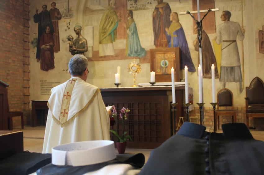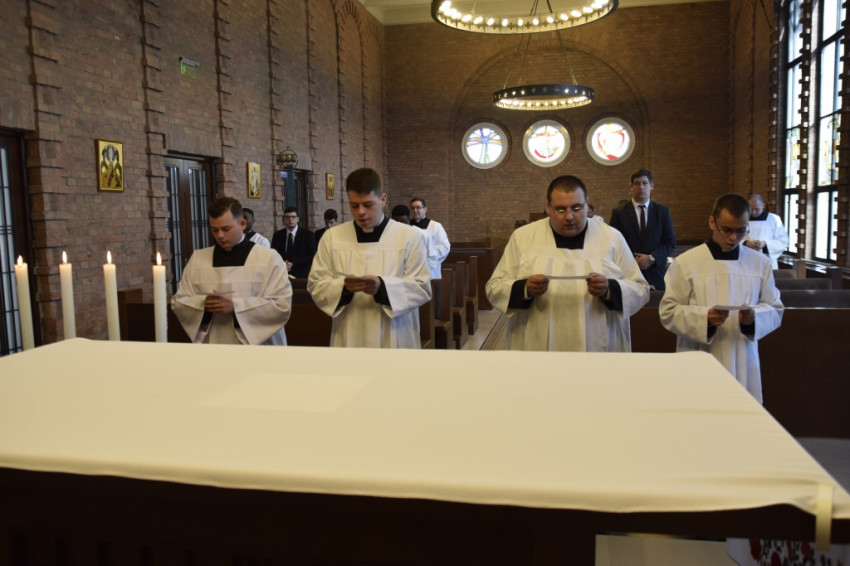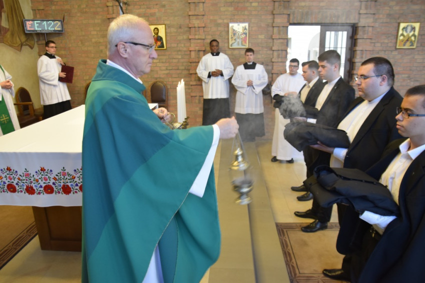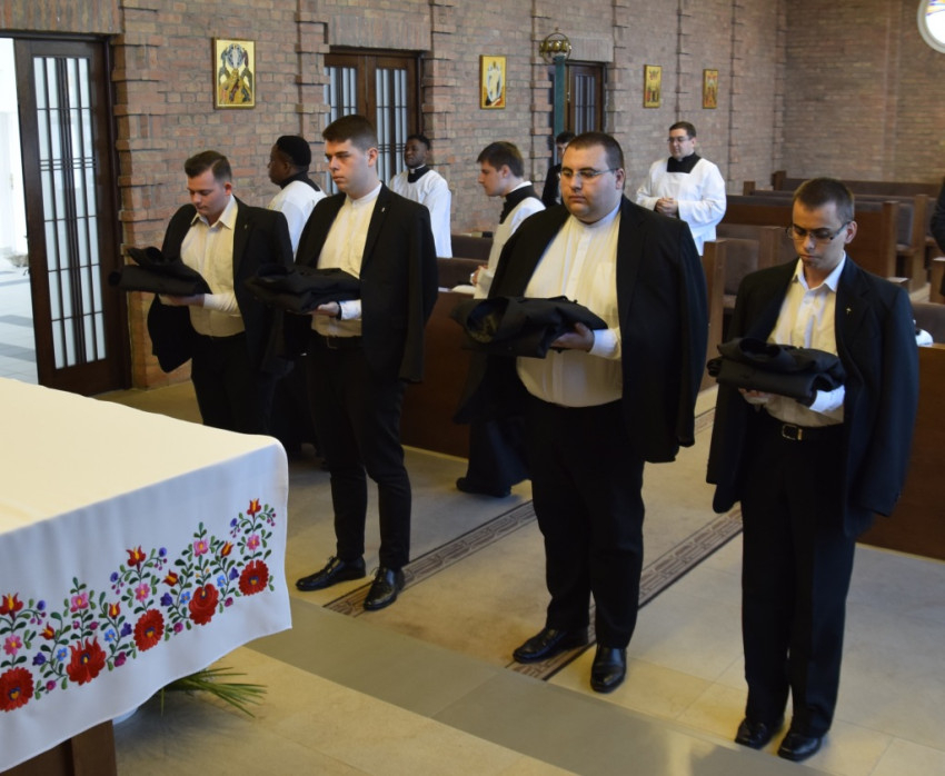 A kétnapos lelki előkészület záró szentmiséjét Kovács József rektor mutatta be, aki a liturgia keretében megáldotta a szent ruhákat. A beöltözöttek közül ketten a Szeged-Csanádi Egyházmegye, egy a Kalocsa-Kecskeméti Főegyházmegye, egy pedig a Nagybecskereki Egyházmegye növendéke.