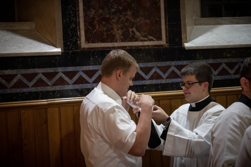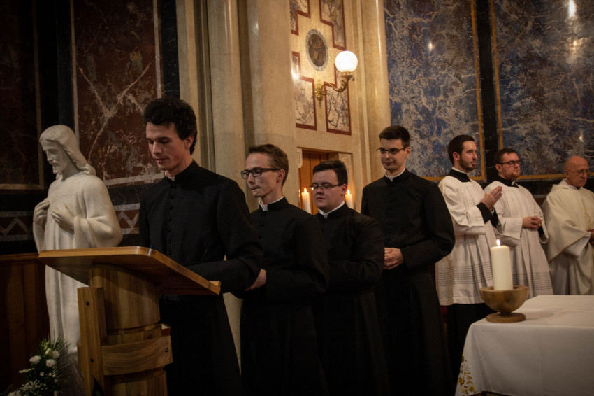 Az este hat órai szentmisében a szeminárium kápolnájában hét bentlakó öltötte magára a reverendát. Krisztus Király ünnepének előestéjén Lobmayer Benedek váci egyházmegyés, Majláth Tihamér, Pongrácz Benedek, Rátkai István és Vörös Dániel szombathelyi egyházmegyés, Riesz Benedek esztergom-budapesti főegyházmegyés, Szalai Tamás székesfehérvári egyházmegyés papnövendékek öltötték magukra a szolgálat ruháját.