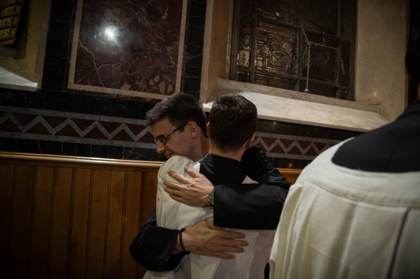 A homília után megáldotta a reverendákat, majd előbb a szeminárium vezetősége, azután a már beöltözöttek közössége békecsókot váltott a frissen beöltözöttekkel, ezzel is jelezve a befogadást és az egységet.