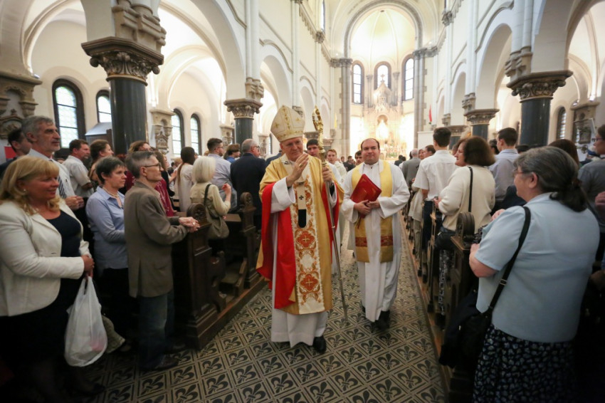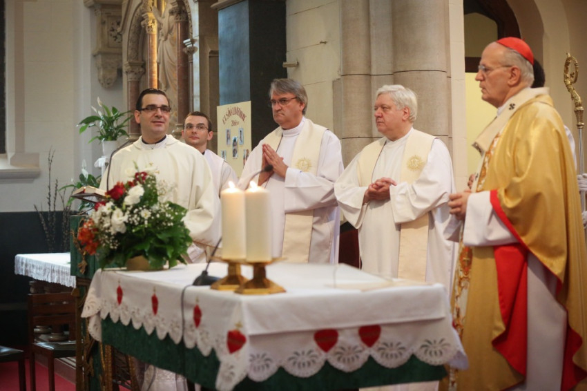 Jézus Szíve ünnepe van, ma tartjuk ennek a 125 évvel ezelőtt megáldott templomnak a búcsúját. Örömmel szolgáltatom ki a bérmálás szentségét a mai szentmisében a jól felkészült fiataloknak. Ünnep ez a mai nap a plébánia és az egész esperesi kerület számára is, hiszen szerzetes atyák és világi papság együtt dolgoznak ugyanannak az apostoli küldetésnek a teljesítésében.