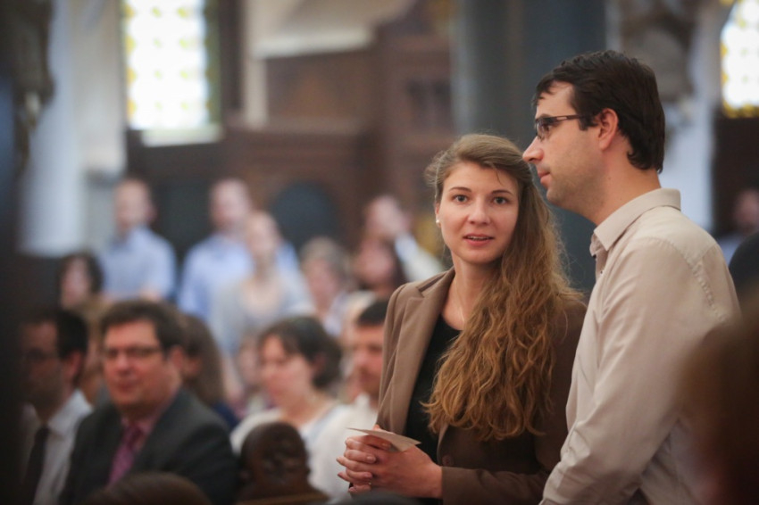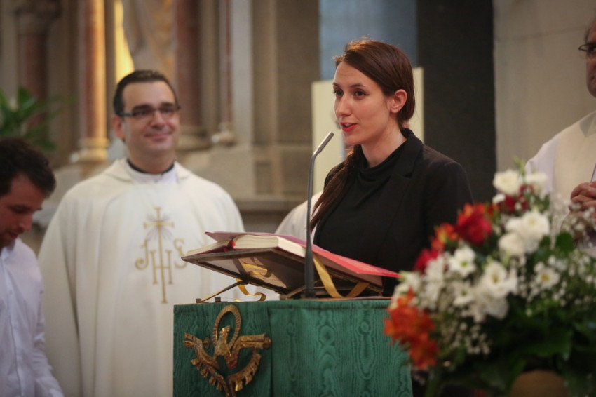 A templomot zsúfolásig megtöltő egybegyűlteket és a Mária utcai közösséggel a közelmúltban harmadízben ünneplő Erdő Péter bíborost Horváth Árpád SJ templomigazgató köszöntötte, Varga Anna és Görög Márton pedig a bérmálkozó fiatalok nevében fordultak a főpásztorhoz.