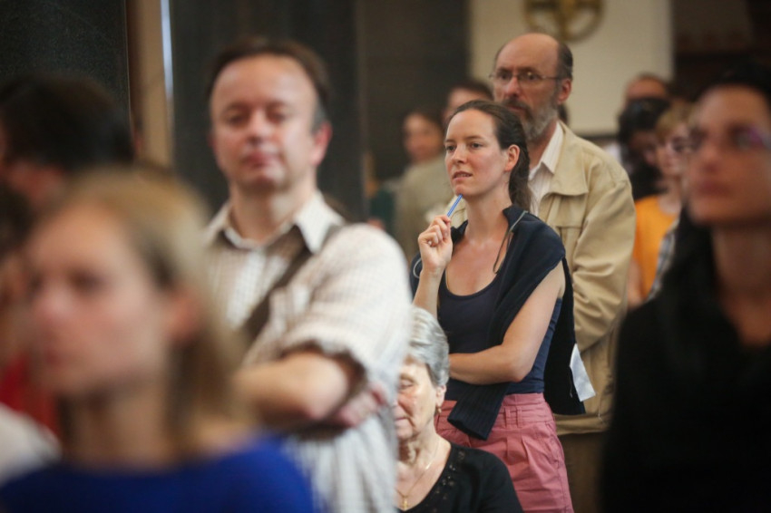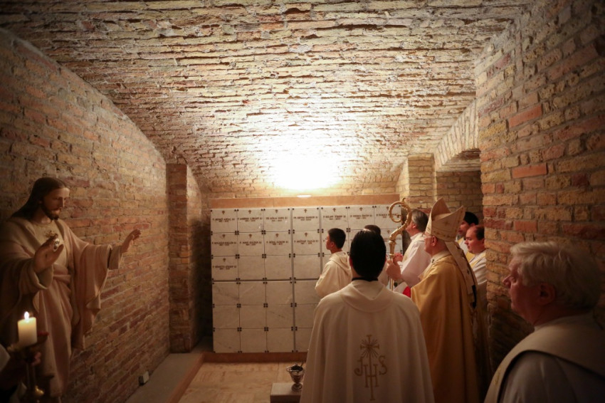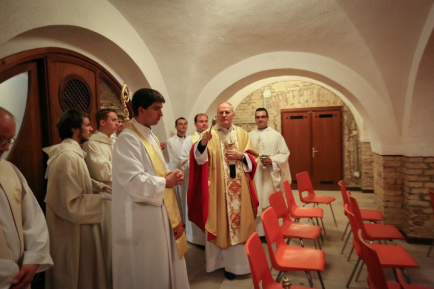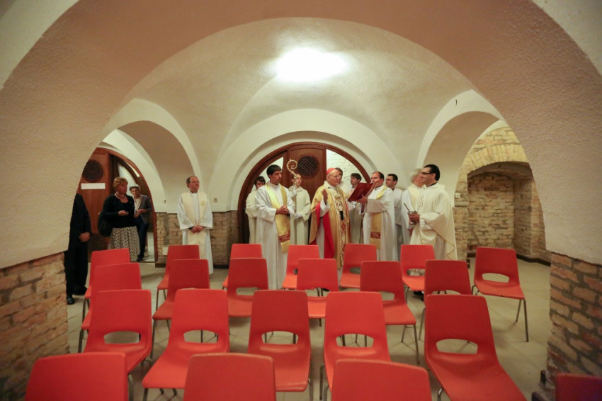 A szentmisét követően Erdő Péter bíboros megáldotta a felújított, egy urnatemetőt is magába foglaló altemplomot. Itt egy raktárhelyiségből közösségi termet alakítottak ki – tudtuk meg Horváth Árpádtól. A Párbeszéd Háza szomszédsága ellenére is sokszor küzdünk helyhiánnyal – mondta el kérdésünkre a templomigazgató. Még hétköznapokon is annyi program fut párhuzamosan, hogy szükség volt a felújításra. Itt kapnak helyet a templomban működő közösségek, köztük a tavaly októberben meghirdetett katekumen és bérmálkozó csoport.