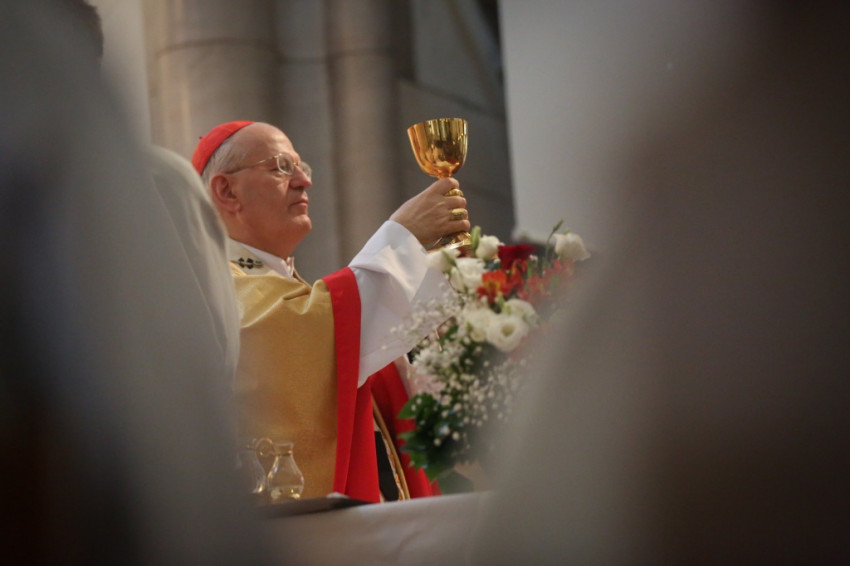 Vedd a Szentlélek ajándékának jelét – idézett Erdő Péter bíboros a bérmálás szentségének kiszolgáltatása liturgiájának szövegéből. S valóban, a bérmálásban ajándékot kapunk, mely eltörölhetetlen jelként megmarad bennünk, s végigkíséri életünket. Mindig ott a lehetőség, hogy ráhallgassunk a Szentlélek szavára. Ha eltérünk is attól az iránytól, amit a Szentlélek jelölt meg nekünk, visszafordulhatunk, újra követhetjük azt, amit kértünk. Egyre könnyebbé válik a haladás azon az úton, melyen a Szentlélek vezet minket – mondta a főpásztor a liturgia elején.