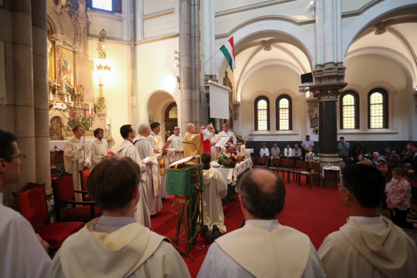 A szentmisén koncelebrált Forrai Tamás SJ jezsuita provinciális, Alessandro Caprioli FSCB, a Krisztus Király-plébánia káplánja, Forgács Alajos, a Budapest-Kelenföldi Szent Gellért-templom plébánosa, Horváth Zoltán, az Avilai Szent Teréz-templom plébánosa, esperes. A szentmise szónoka Erdő Péter bíboros volt.