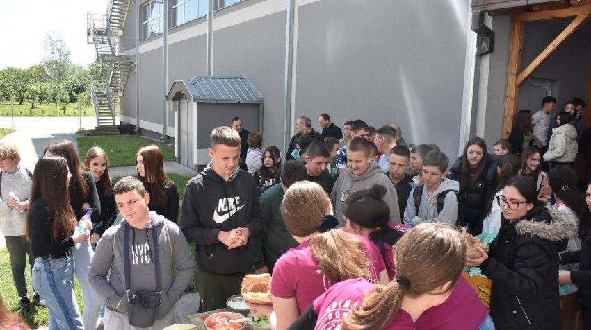 Az ebédet – a fiatalok kedvencét: hamburgert és Coca-Colát – az udvaron szolgálták fel, majd fogyasztották el a jelenlévők.