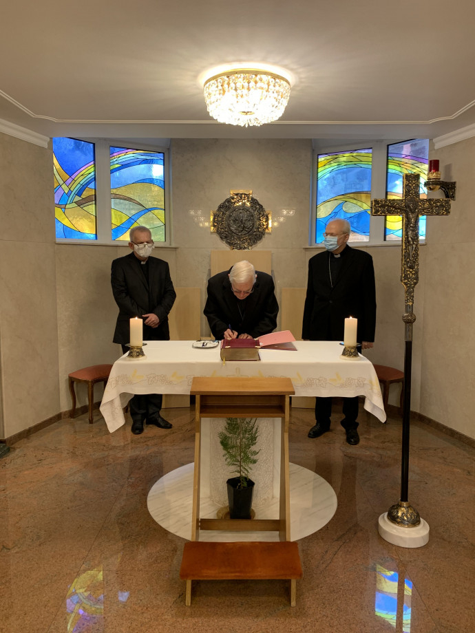 Az egyházi hagyományoknak megfelelően – betartva a hatályos járványügyi rendelkezéseket – tette le a hitvallást és a hűségesküt Berta Tibor, a Magyarországi Katonai Ordinariátus kinevezett püspöke. A zárt körű bensőséges szertartásra az apostoli nunciatúra kápolnájában került sor március 17-én délelőtt.
