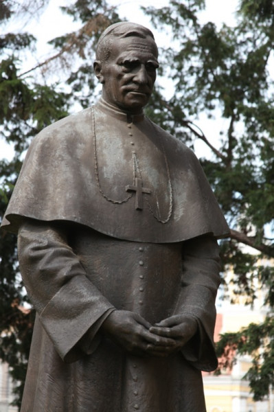 A zarándokokat Csíkdánfalván Bara Ferenc főesperes-plébános fogadta, aki 26 évesen lett Áron püspök titkára, 1978 augusztusában. Megtapasztalhatta az akkor már súlyosan beteg főpásztor jóságát, de azt is, hogy mennyire határozott és hajthatatlan volt, ha az állam beavatkozásai ellen kellett fellépnie.