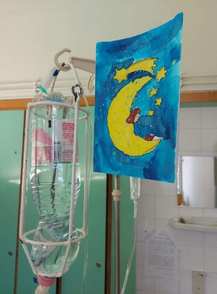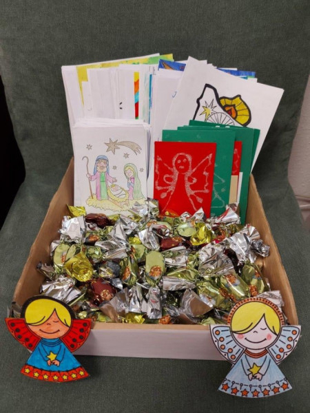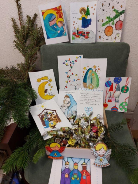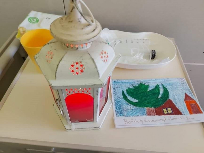 A szolgálatunk által felajánlott szaloncukrot és szentképeket ajándékoztuk és mellé gyerekrajzokat is kaptak a betegek, melyeken örömteli képek és sorok röpítették el lelküket a betlehemi örömbe.