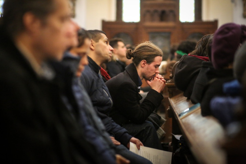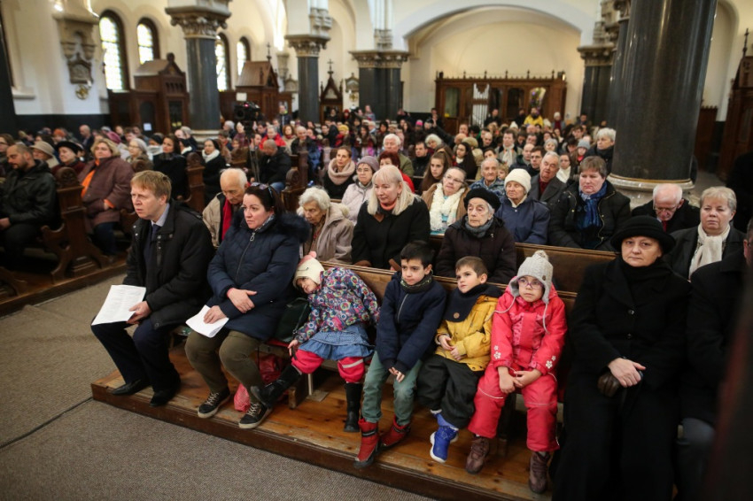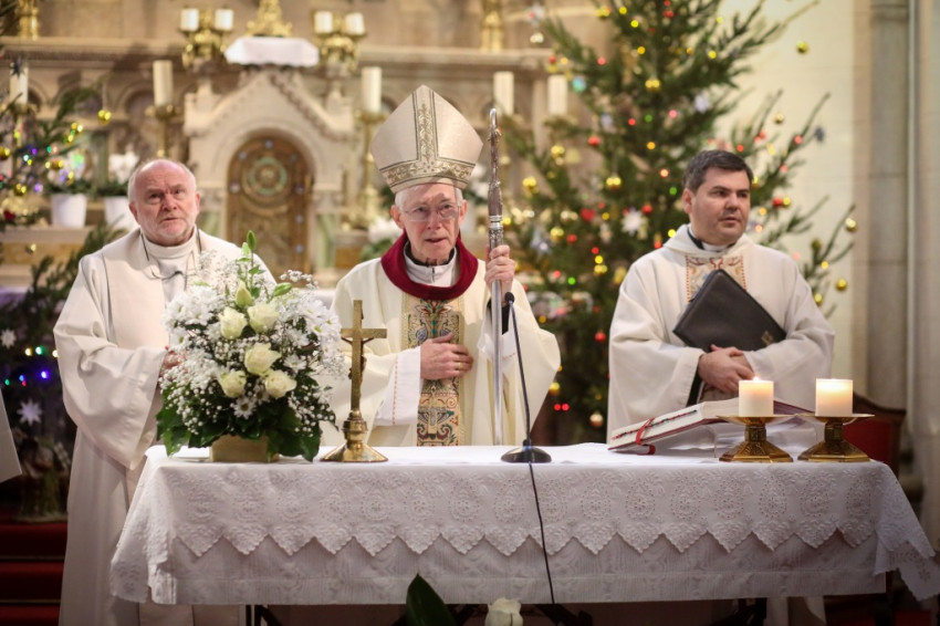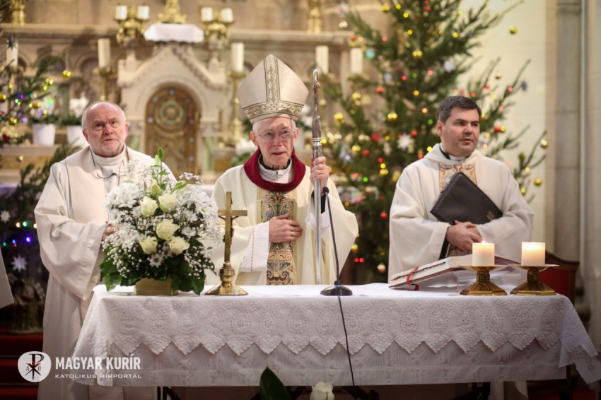 Az ebéd előtt a vendégek és házigazdáik, a megannyi önkéntes és más érdeklődők zsúfolásig megtöltötték a jezsuiták Jézus Szíve-templomát, ahol Michael August Blume apostoli nuncius mutatott be szentmisét. A liturgia elején Sajgó Szabolcs jezsuita köszöntötte a résztvevőket, külön is kiemelve Ferenc pápa frissen hazánkba érkezett küldöttét. Szavai szerint a karácsonyi ünnepen úgy vagyunk jelen, mint a pásztorok a betlehemi éjszakában. A szentmisén a Közép-afrikai Köztársaság javára gyűjtöttek, ahol a Sant’Egidio közösség a DREAM program keretében az AIDS kezelésére alkalmas rendelőintézeteket készül nyitni.