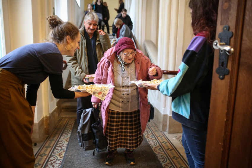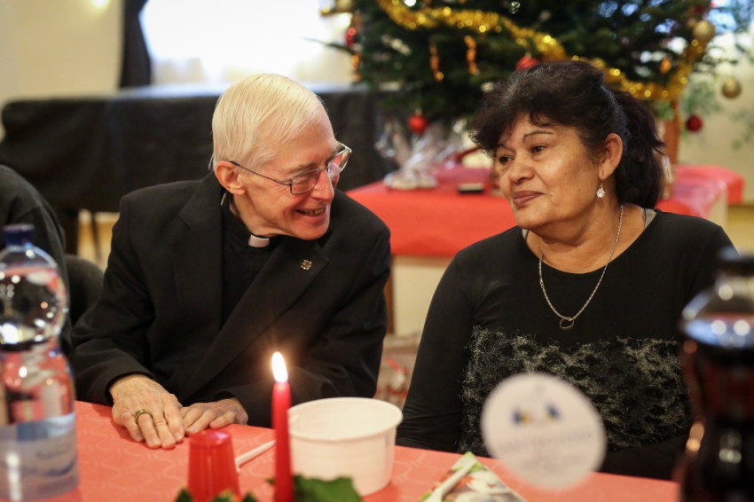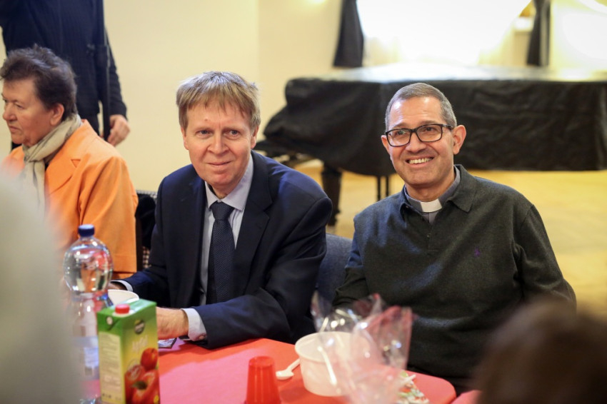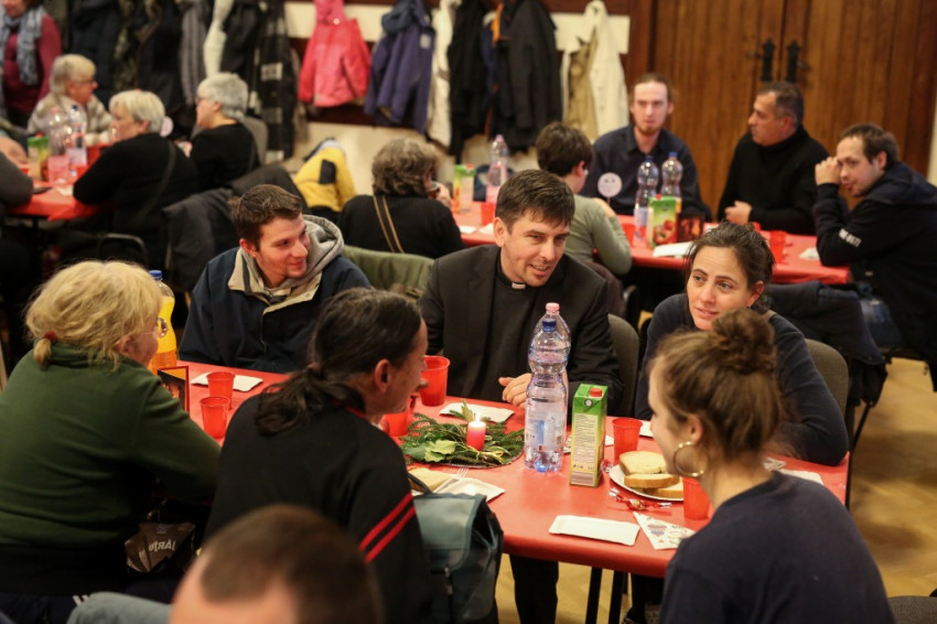 Az ebéd ezúttal is nemzetközi volt: Victor atya, Rómában élő szír jezsuita arabul mondta el a Miatyánkot az asztali áldás után, de Szíriát egy hazánkban tanuló muszlim diák is képviselte, aki a közösséggel hűséges barátja a hajléktalanoknak – a két honfitárs nem várt találkozása szép pillanata volt az ebédnek. Az önkéntes segítők között akadtak brazilok és olaszok is.