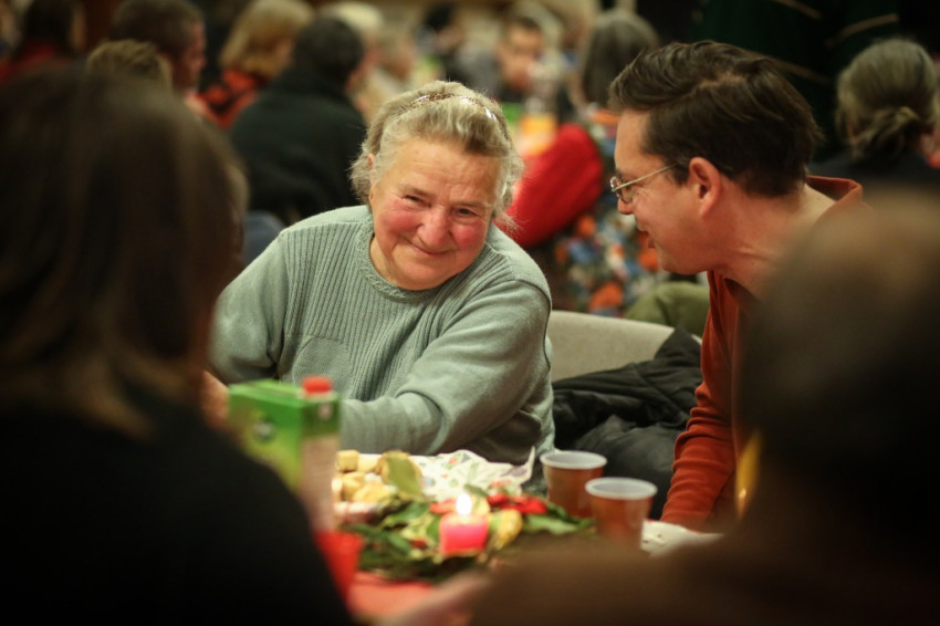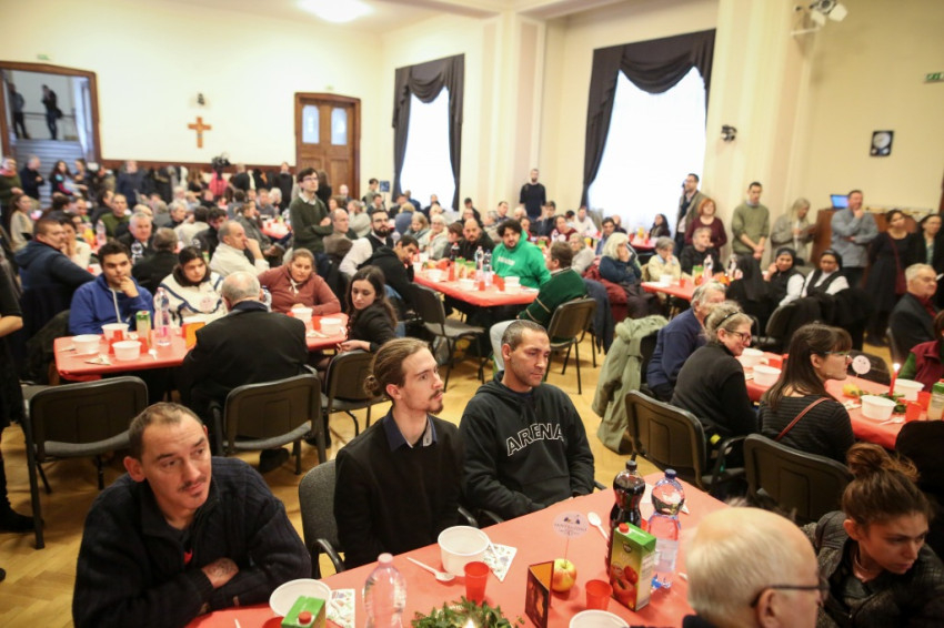 Az ebéden mintegy kétszáz szegény vendég vett részt, és megvalósult az, amit XVI. Benedek pápa és Ferenc pápa mondott a Sant’Egidióról: az, aki szolgál elvegyül azzal, akit szolgál. Az asztalnál hajléktalanok, szociális otthonokban, vagy saját lakásukban egyedül élő idősek ültek, csupa olyan ember, akiket máshol nem várt terített asztal karácsony napján, és akiket azonban a közösség tagjai év közben is rendszeresen látogatnak.