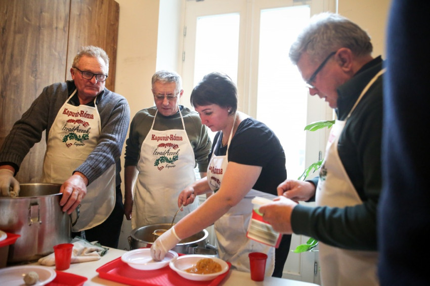 A két első fogásról ezúttal is az Európa-hírű Kapuvári ÍzvadÁszok gondoskodtak, akik a Vatikán mellett, a pápa ablakai alatt ennél nagyobb sokaságnak is főztek már.